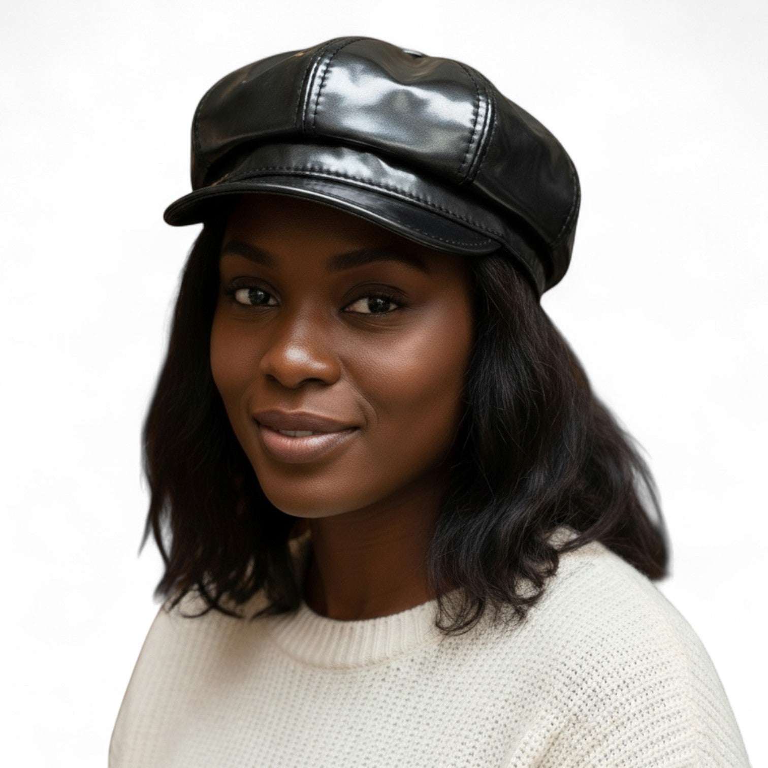 This hat is made with authentic leather. It is hand stitched and fits a medium head.